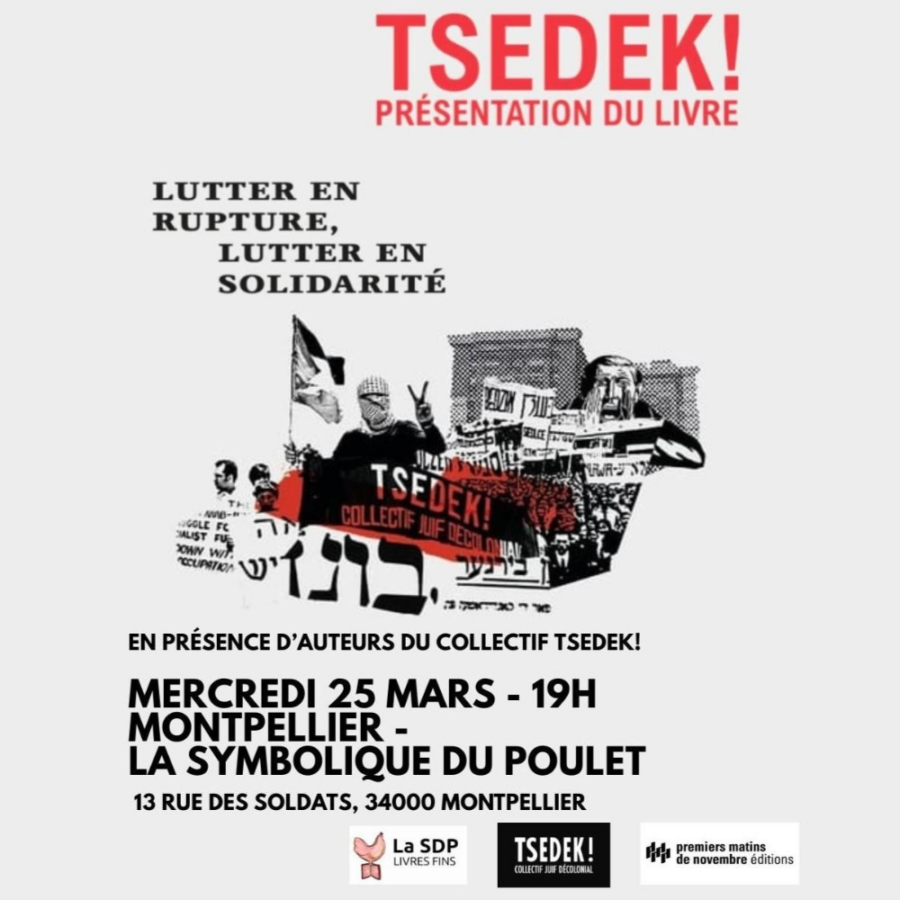 Lire la suiteRencontre avec le collectif Tsedek! autour de leur livre « Lutter en rupture, lutter en solidarité » – Mercredi 25 novembre à 19h