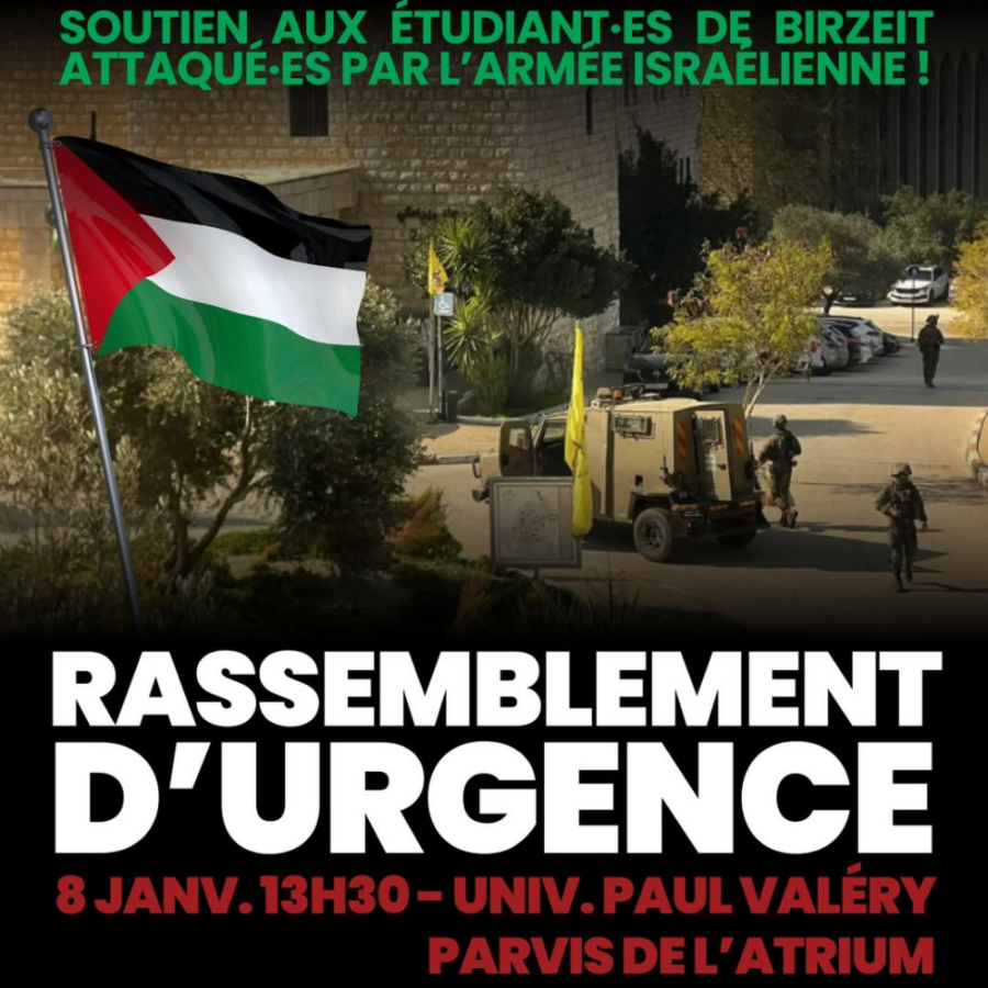 Lire la suiteCommuniqué de l’université de Birzeit – Appel à rassemblement Jeudi 08/01/2026 à 13h30 à Atrium