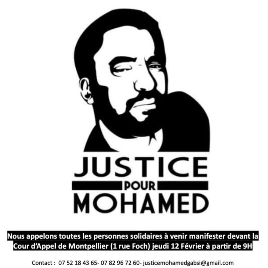 Lire la suiteJeudi 12 Février à partir de 9H – Rassemblement Jugement à la Cour d’Appel de Montpellier des policiers municipaux de Béziers responsables de la mort de Mohamed Gabsi